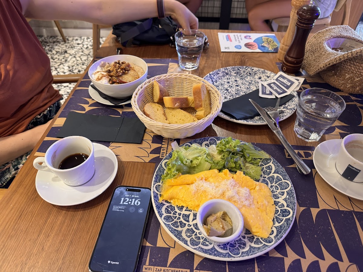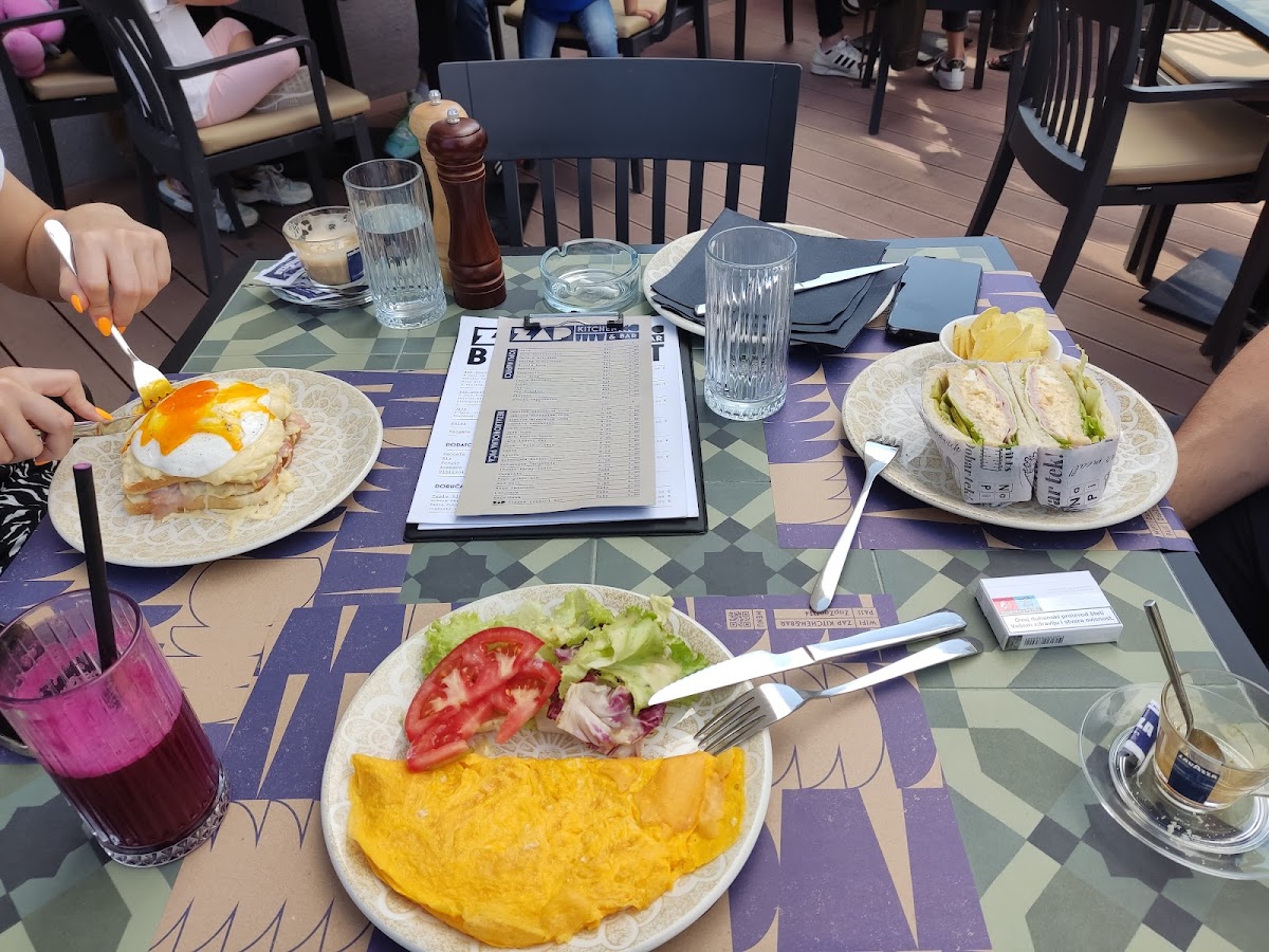 Yummy breakfast options. Relatively affordable prices for Europe. Friendly staff who checked in regularly with us during the service :) portions are quite big and they serve bread on the side. So suggest to share if you’re not a big eater